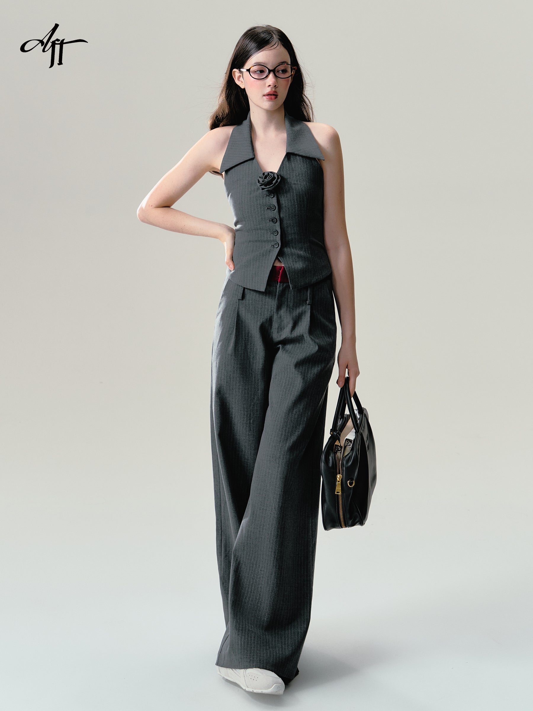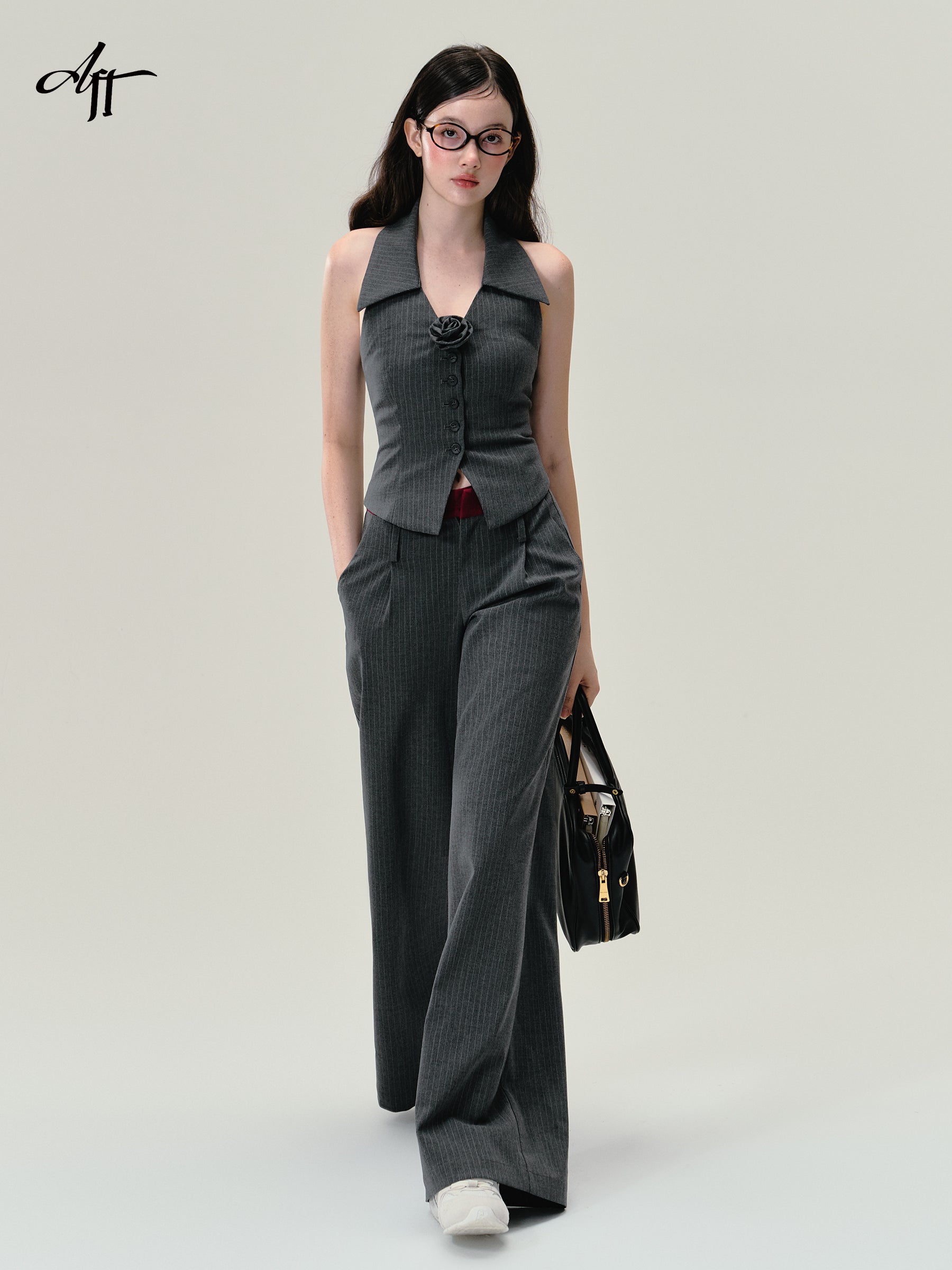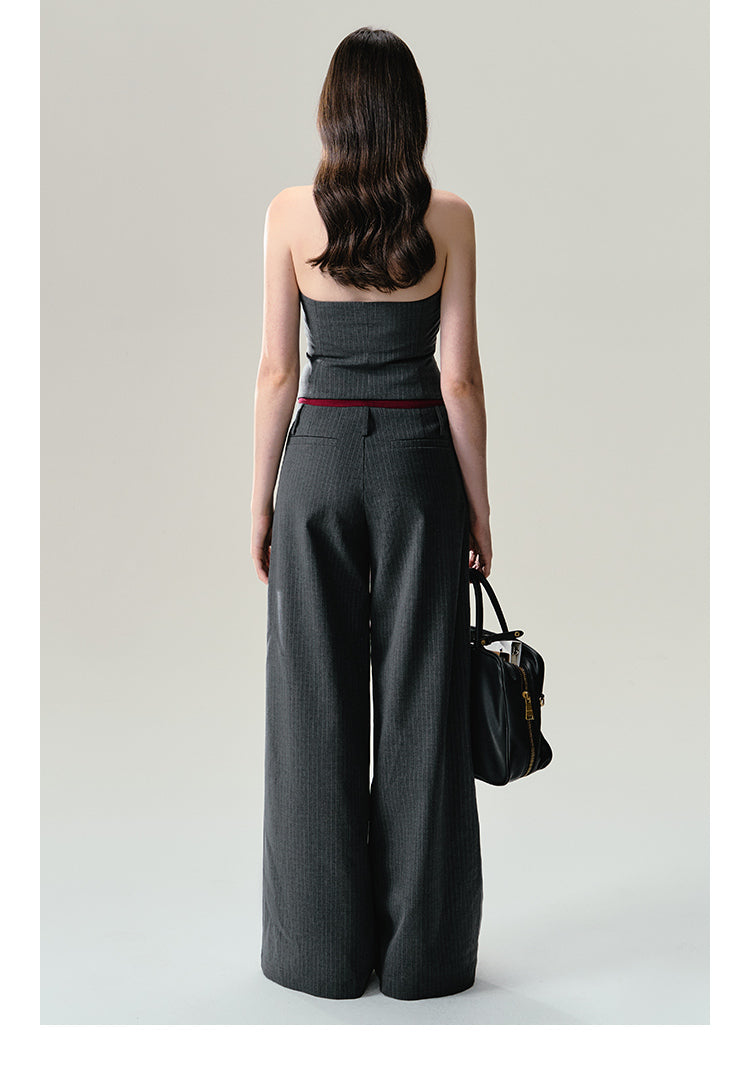 Striped Cropped Jacket, Vest, Wide-Leg Pants Suit