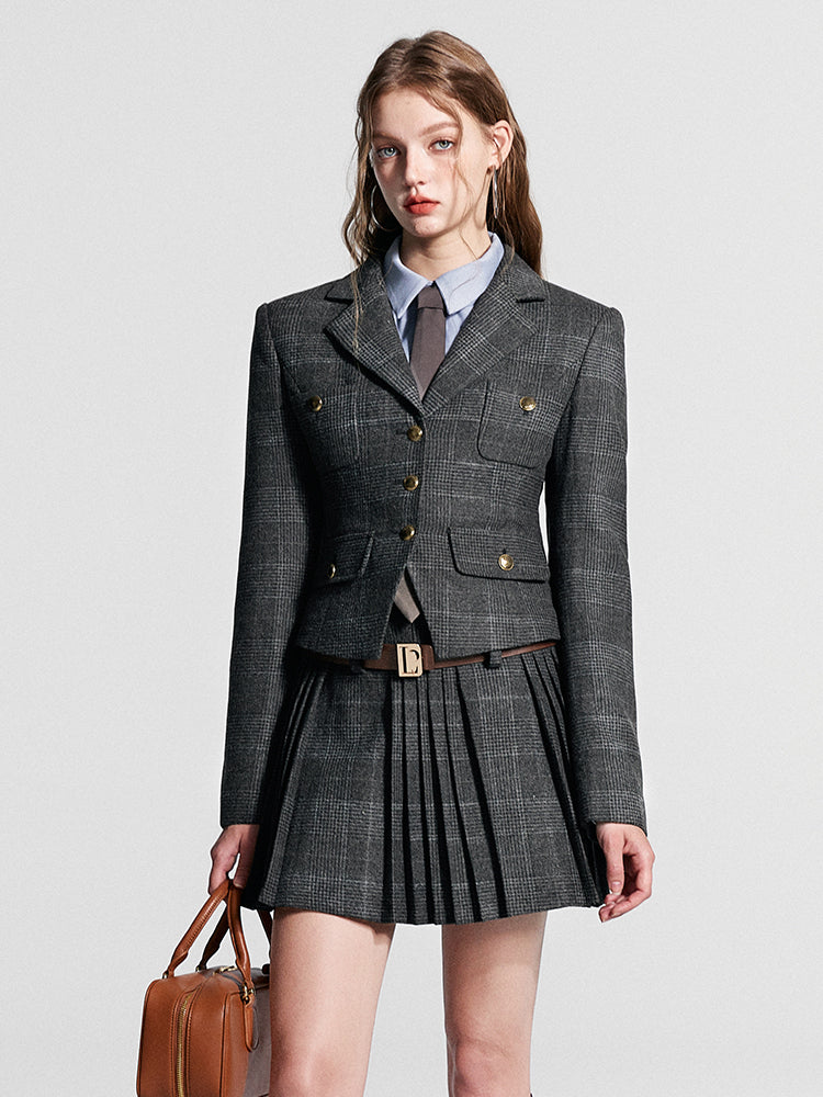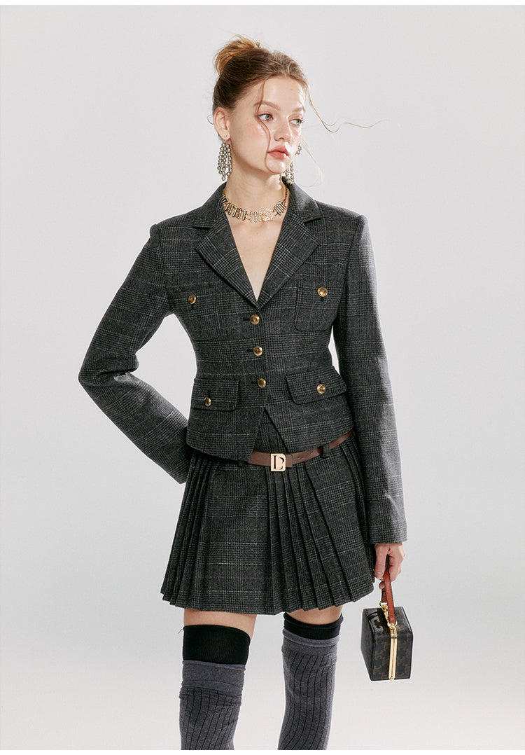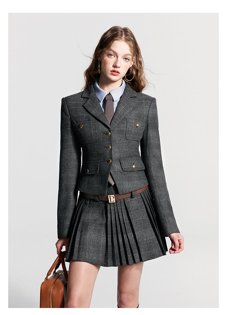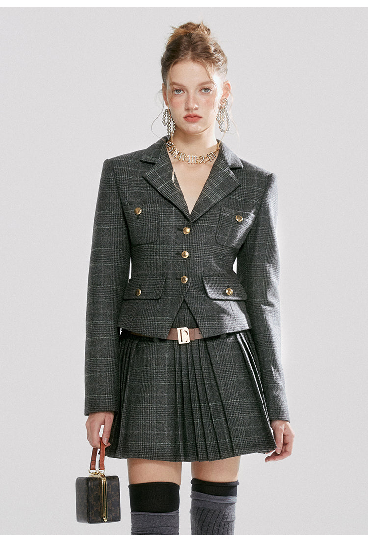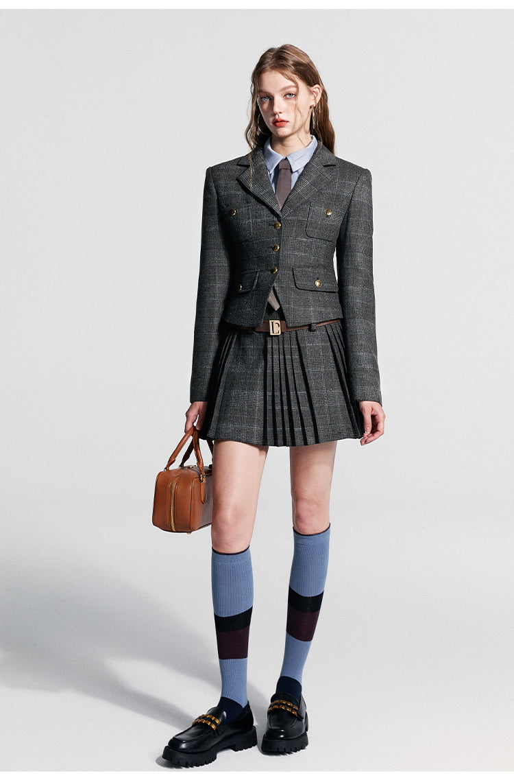 Tailored Blazer And Pleated Skirt With Dropped Belt Loops