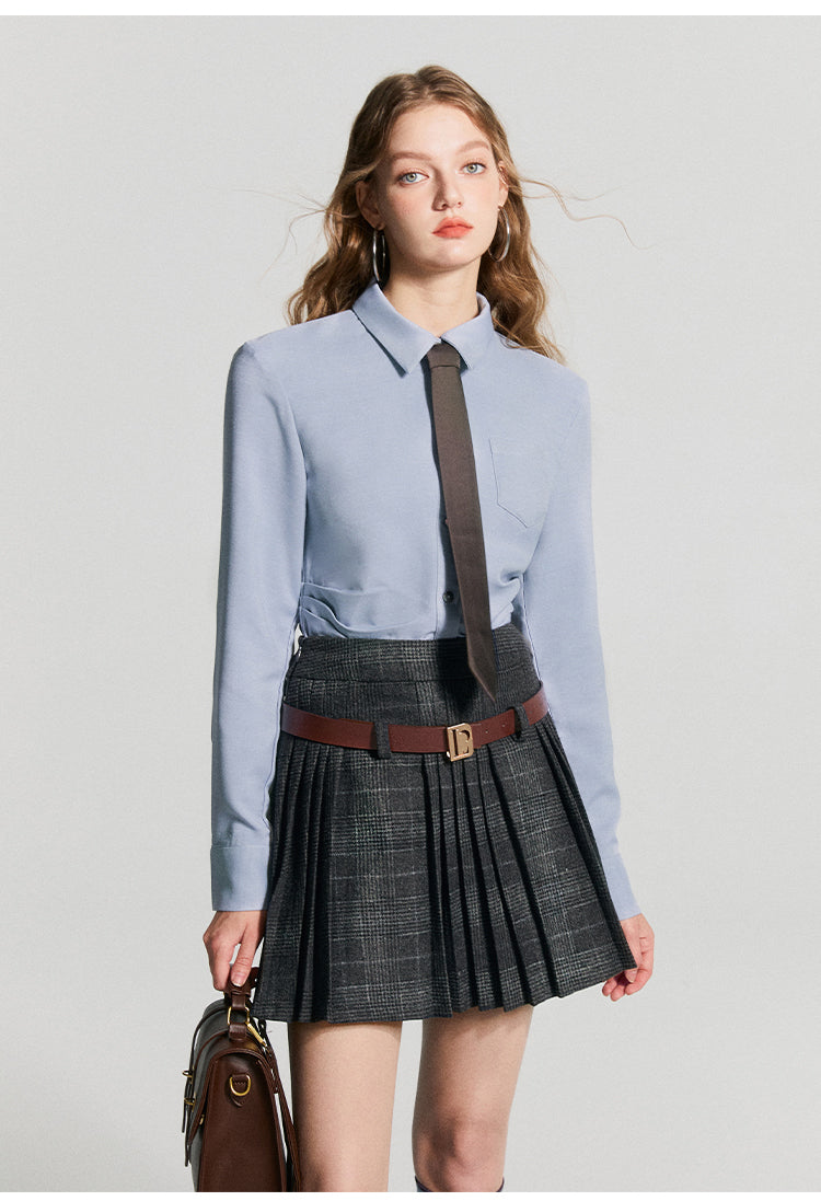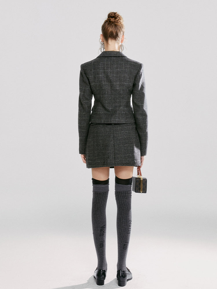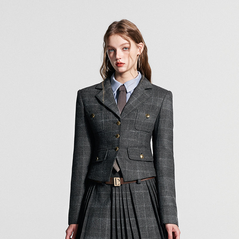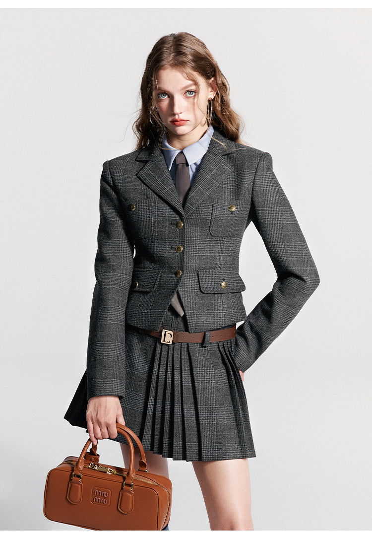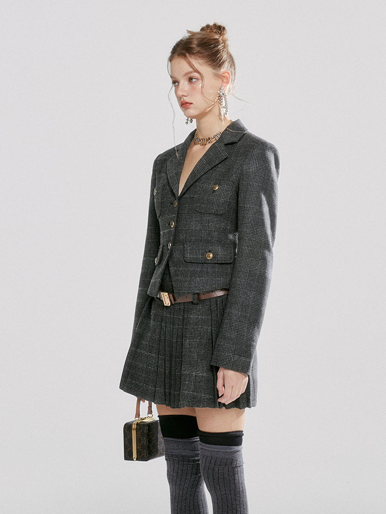 Tailored Blazer And Pleated Skirt With Dropped Belt Loops