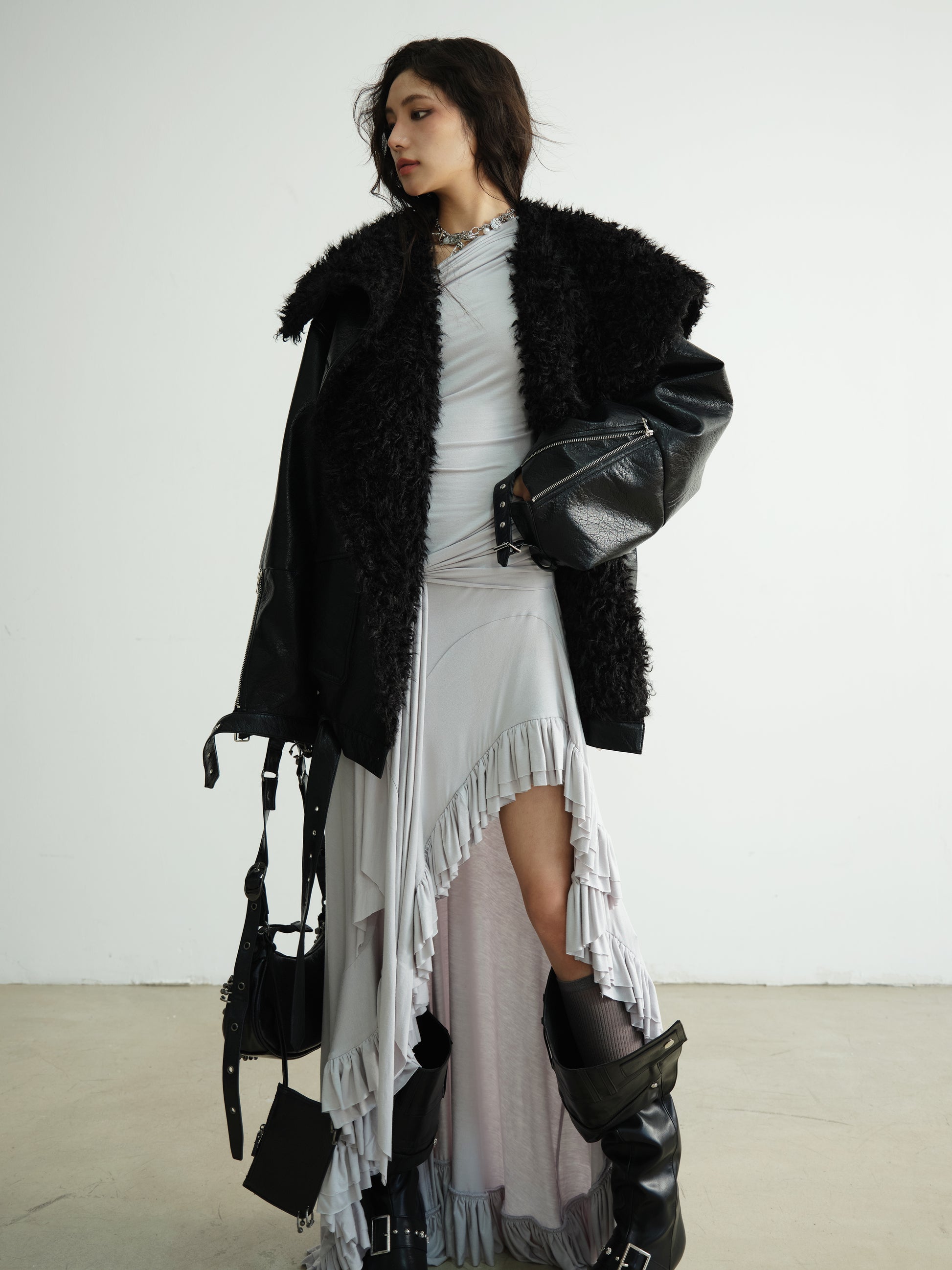 Two-Way Shoulder Asymmetric Ruffled Hem Dress