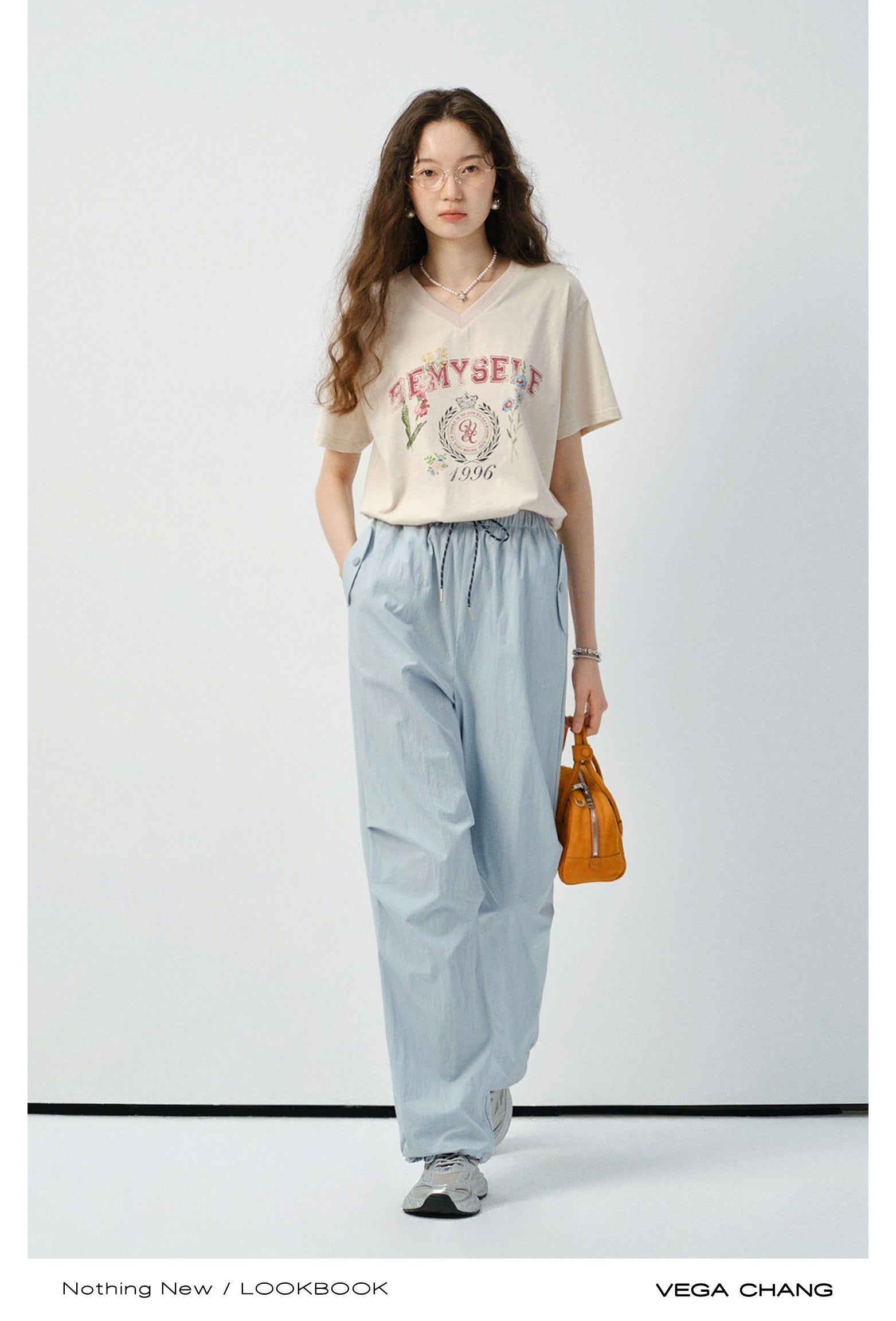 V-Neck Floral Print T-Shirt & Drawstring Pants