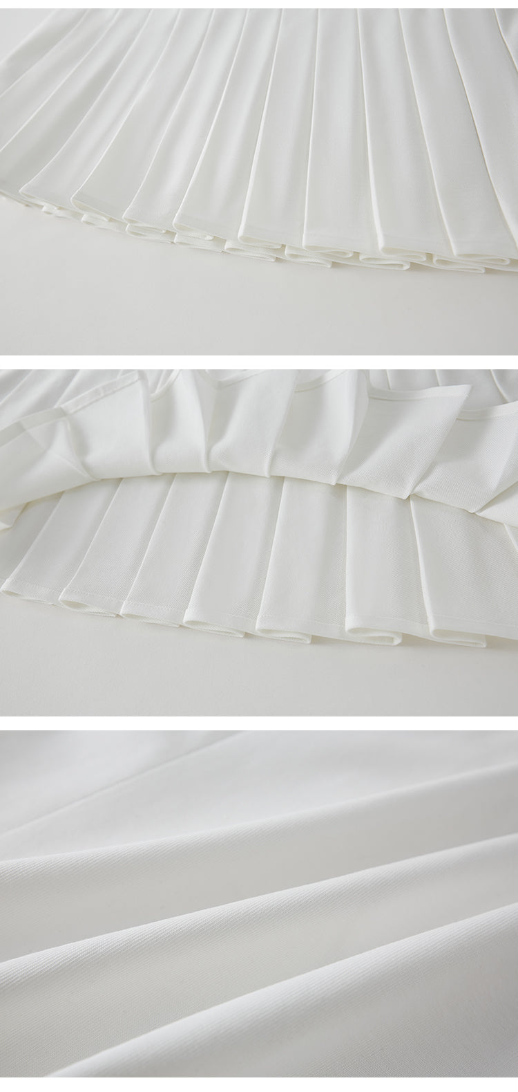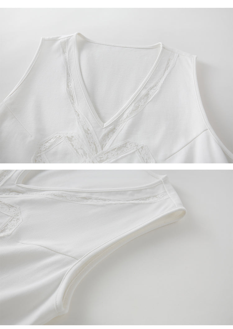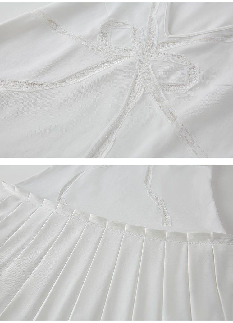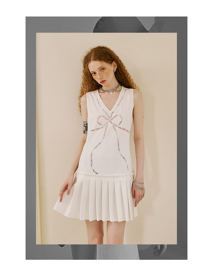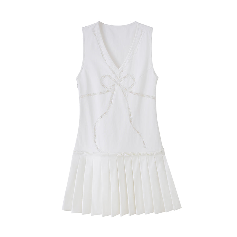 V-Neck Sleeveless Pleated Dress With Lace Ribbon
