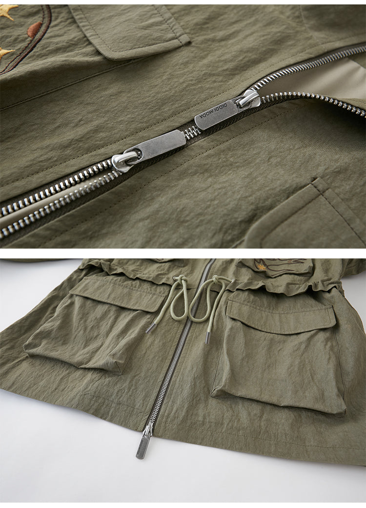 Windbreaker Jacket With Mushroom & Swallow Patches