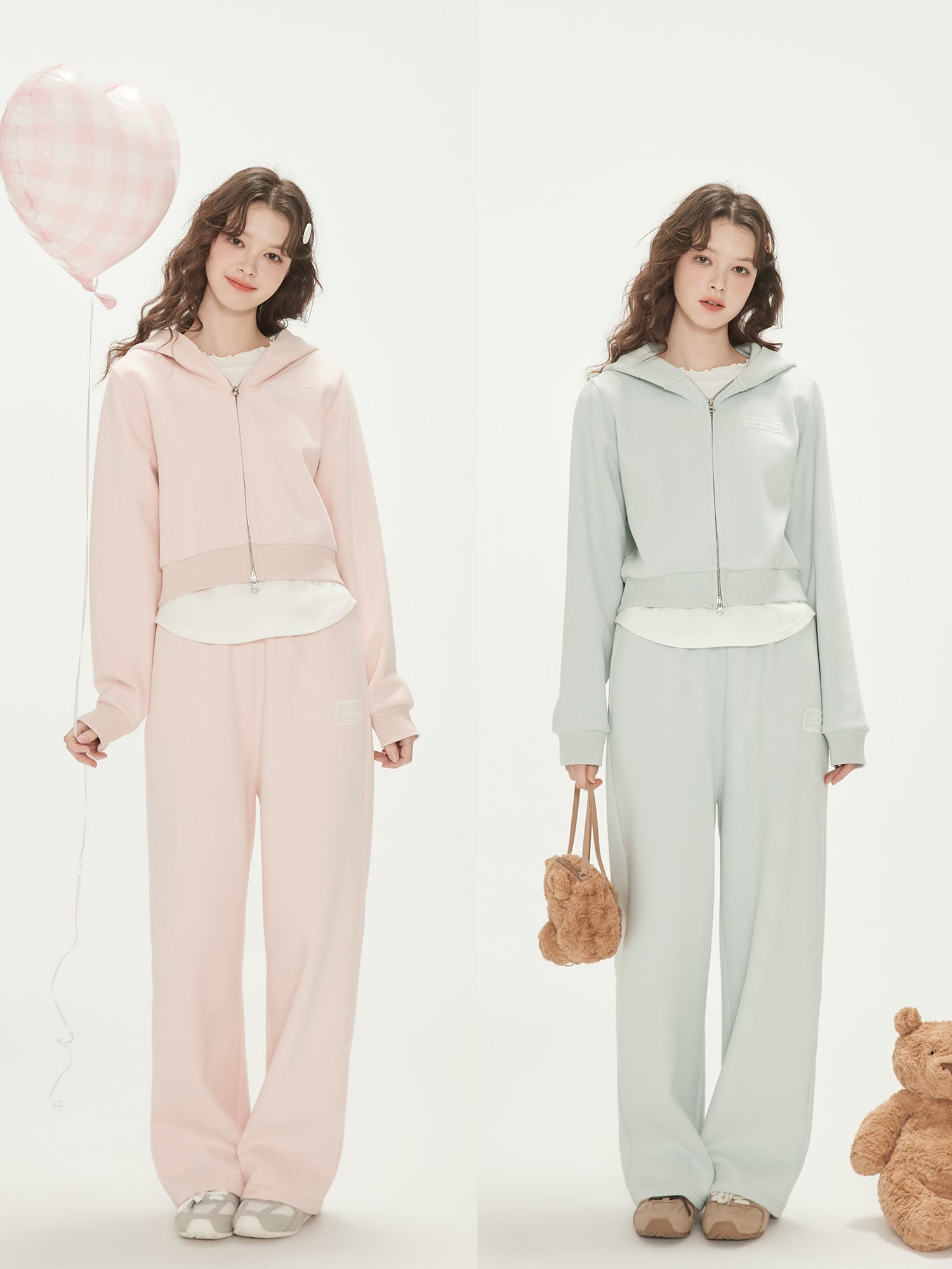 Zip-Up Hoodie And Sweatpants With Embroidered Label